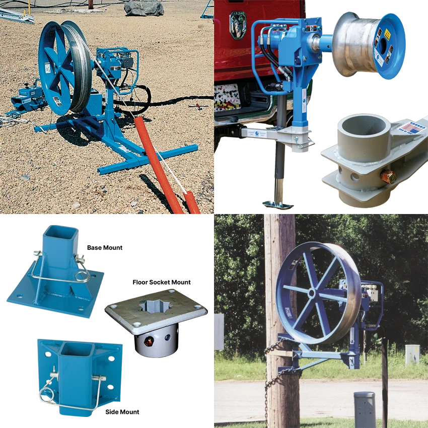 Estos extractores constan de un motor hidráulico y un pedal de velocidad variable. Todos están calibrados para una tensión máxima de tracción de 277 kg (600 lb) en un cabrestante de 76 cm (30″); la tensión máxima de tracción se puede ajustar mediante la válvula de alivio de presión ajustable manualmente.