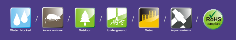 • Cable fibra óptica para soterrar. El diseño universal es adecuado para su uso en la mayoría de los ámbitos de redes, incluidos la red troncal, el acceso y la distribución.