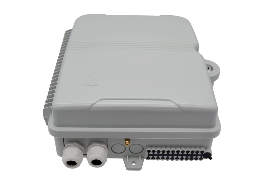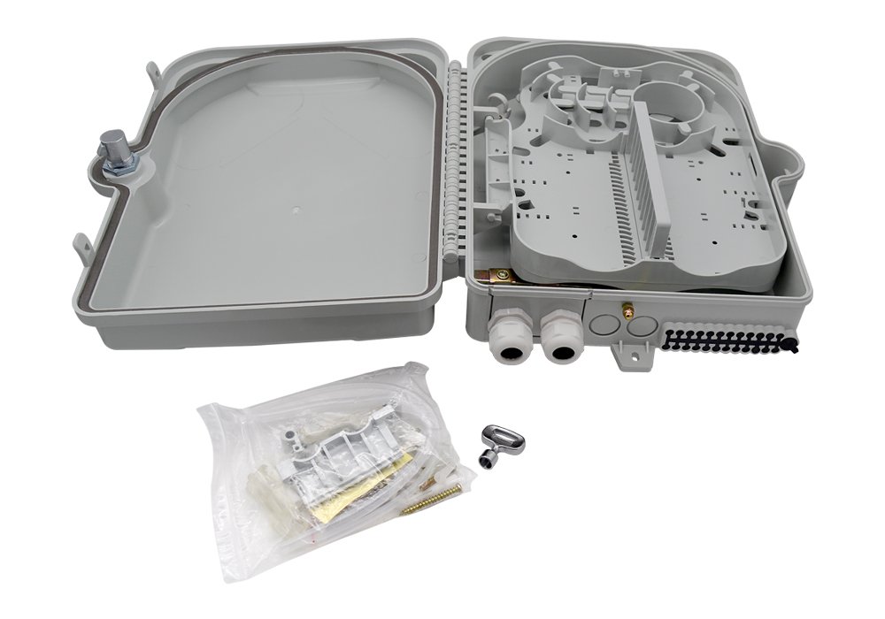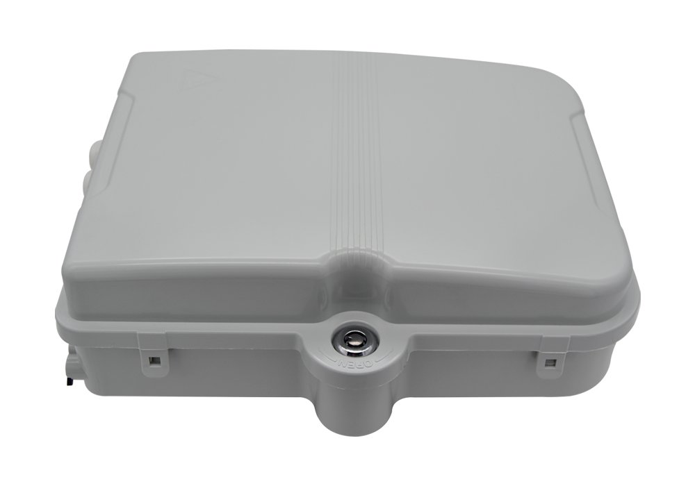 Caja fibra óptica FTTH de distribución, con cerradura, cumple IP65 y resistente a los rayos UV se suministra descargada como estándar y ofrece la capacidad de terminar 24 fibras alojadas en una carcasa de ABS resistente y robusta para aplicaciones en interiores y exteriores.