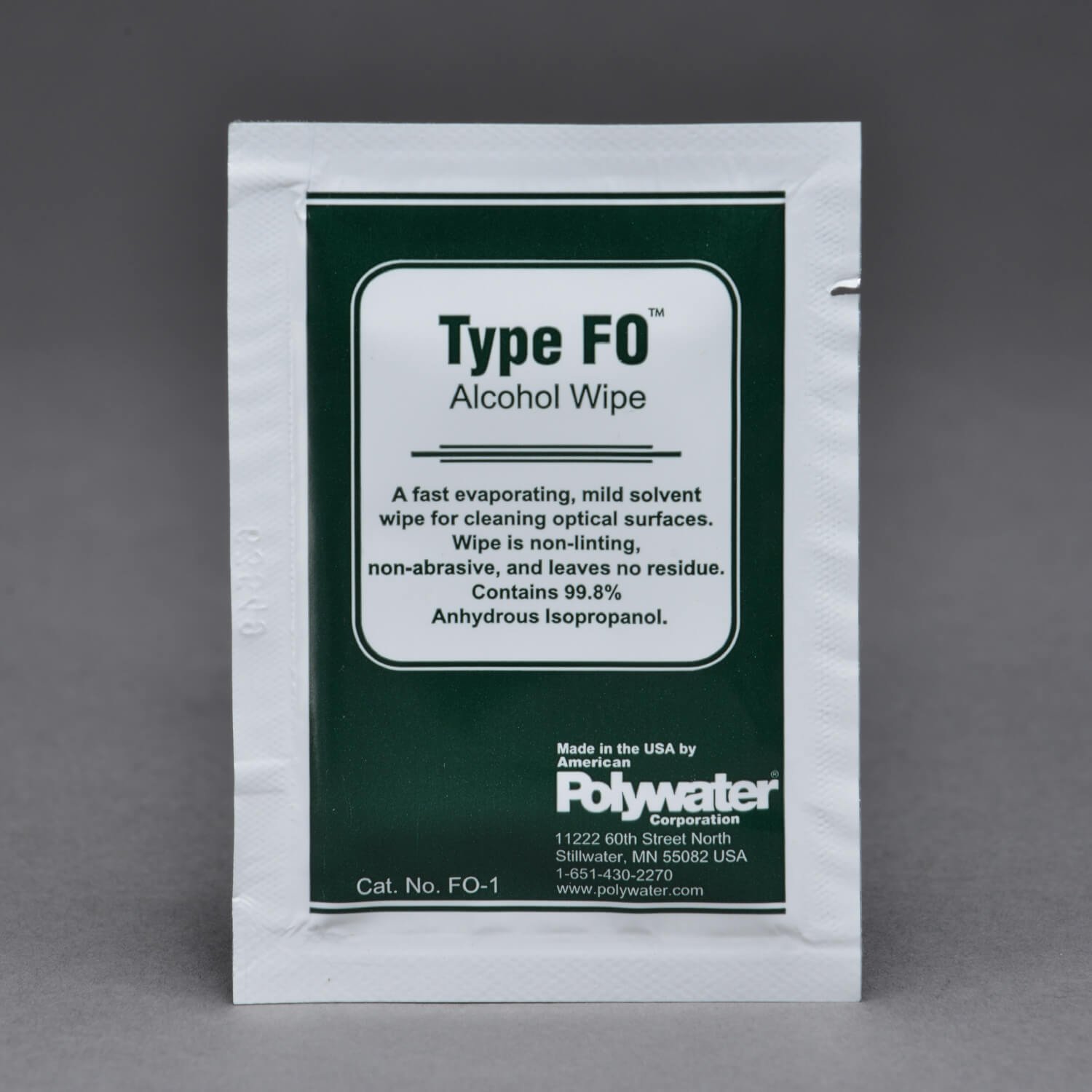 Tipo FO ™ está disponible en una toallita pre-saturado conveniente. Las toallas son duraderos y no desprende pelusas. Toallitas pre-saturados son una opción conveniente para el uso en campo. El paquete limita la exposición al vapor y elimina los riesgos de derrame. No hay necesidad de transportar grandes cantidades de alcohol inflamable.