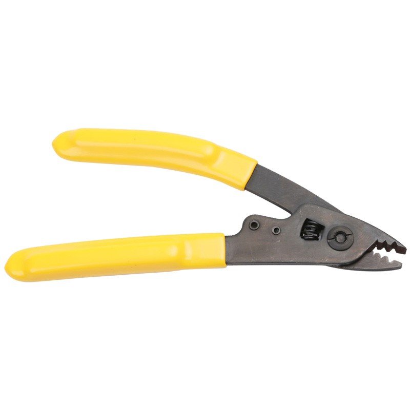 Stripper fibra óptica  Herramienta pelador para fibra óptica,  económica y fácil de manejar,  muy  resistente.  Incluye tres guías  para las cubiertas de cables:  2,5 o 2,0 mm exterior, y 900μm Buffer y revestimiento acrílico 250 micras,  del filamento desnudo, incorpora cierre de seguridad y set de ajuste de fábrica, herramientas para fibra óptica.