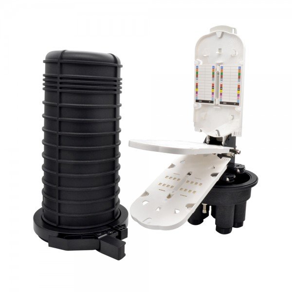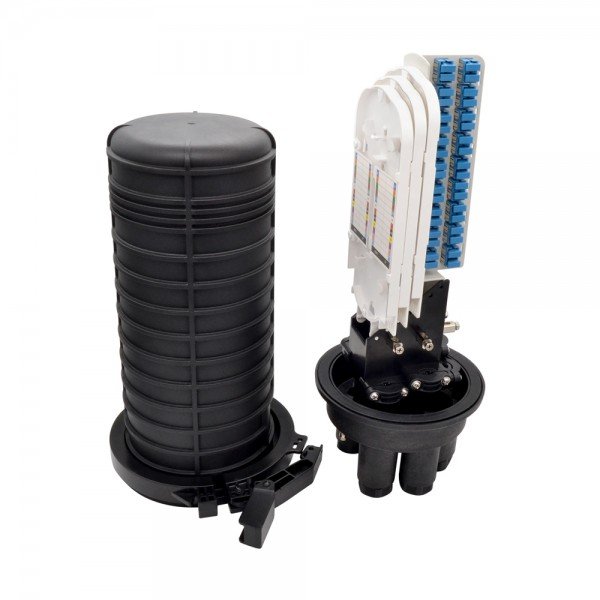 Mufa de fibra óptica domo. Real Optic es la solución mejor diseñada e innovadora para la instalación de cableado de fibra. Adopta una estructura de sellado mecánico totalmente IP68 para un buen rendimiento de sellado del cable de fibra de más de 144 fibras. Se puede instalar PLC Splitter hasta 2x 2:32 con 36 puertos SC Adapters. Múltiples aplicaciones e instalaciones con montaje aéreo, en poste y en pared.