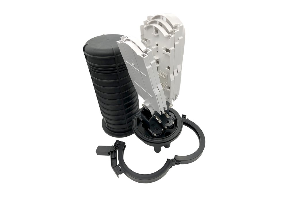 Mufa telecomunicaciones. El domo Real Optic es la solución mejor diseñada e innovadora para la instalación de cableado de fibra. Solo requiere su junta de sellado de caucho de silicona para garantizar el buen rendimiento de sellado del cable de fibra, hasta 144 fibras de fibra.