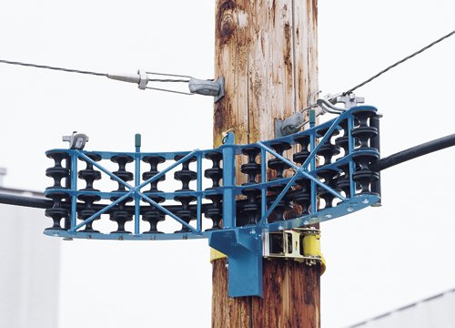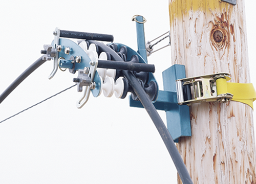 Pole Bracket Mount Adapter. Se instala fácilmente en el soporte del palo para proporcionar un eje horizontal para montar esquina de 45 grados Los bloques que se van a utilizar como una rampa de carrete a hebra. Pole Bracket Mount Adapter es un accesorio que complementa un sistema para el tendido de cables aéreos.