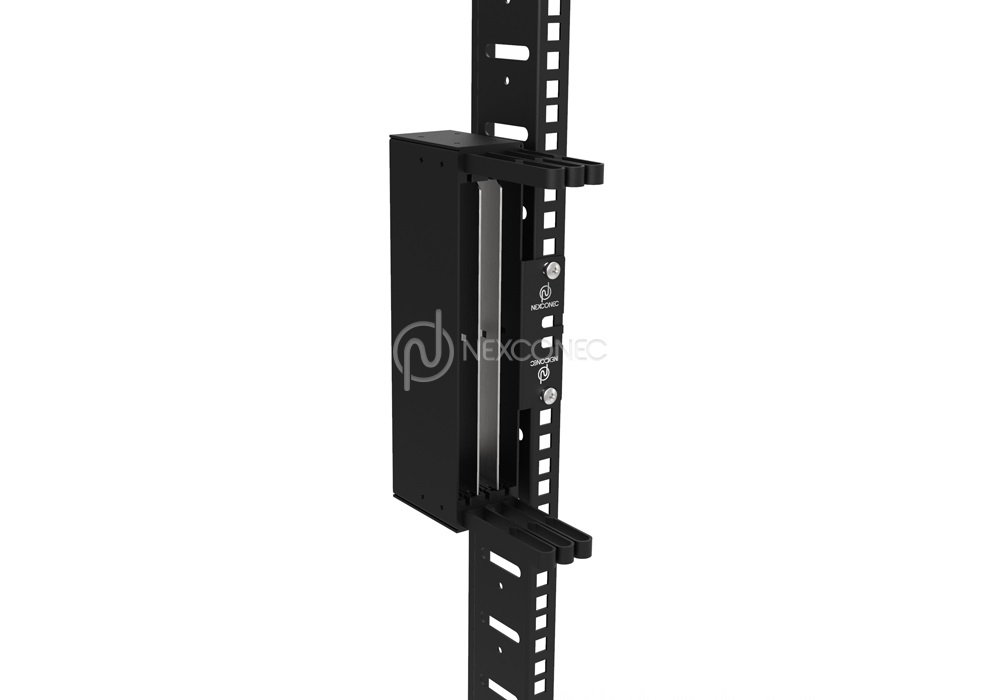 Soporte NGX Cero RU agrega una ubicación adicional para el panel de conexión para liberar espacio adicional en el gabinete. El panel Zero U se instala verticalmente en el riel del gabinete y crea un punto conveniente para la distribución de cables de conexión dentro del sistema de estantería vertical. El soporte Zero RU acepta hasta 3 módulos Nexconec NGX. El Soporte se suministra descargado y los módulos se suministran por separado.