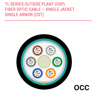 TL Loose Tube Outdoor Plant Armored (CST) Diseñados para aplicaciones exigentes en planta externa (OSP), estos cables de fibra óptica de OCC ofrecen la durabilidad reconocida de la marca, con una construcción de tubo holgado trenzado, libre de gel, y blindaje con cinta de acero corrugado para una mayor protección mecánica.